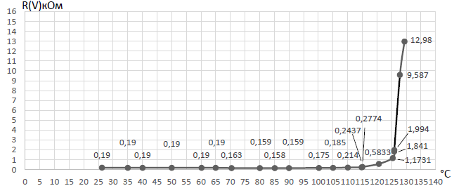 Время термического отклика 5 сек. Прочность эл. изоляции AC 2,5 кВ Максимальная рабочая температура 180 0С Температура хранения -40…180 0С