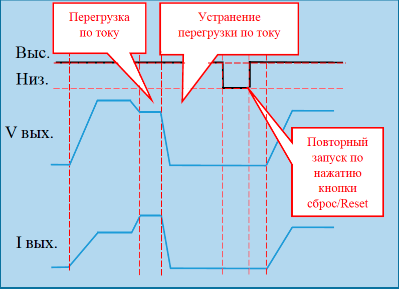 Фиксация аварии –остается выключенным после фиксации КЗ или перегрузки. Возобновить нормальную работу, если текущая ошибка исправлена. Нажав кнопку «Сброс/Reset» на самом реле или подать сигнал на клеммы R1-R2 дистанционно. В отличие от обычного предохранителя, который выгорает и нужен новый.