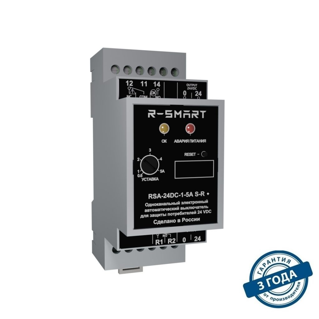 RSA-24DC-1-5A S-RОдноканальный электронный автоматический выключатель для защиты потребителей сети 24 VDC от перегрузки и КЗ, с регулируемой уставкой по току (от 1А до 5А) и механической кнопкой сброса аварии.Стоимость 7000 с НДС