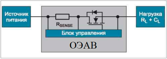При протекании тока от источника питания к нагрузке через одноканальный электронный автоматический выключатель,ток контролируется по напряжению на резисторе. Если он превышает установленное значение, управляющая логика отключает полевой транзистор, блокируя прохождение тока к нагрузке.