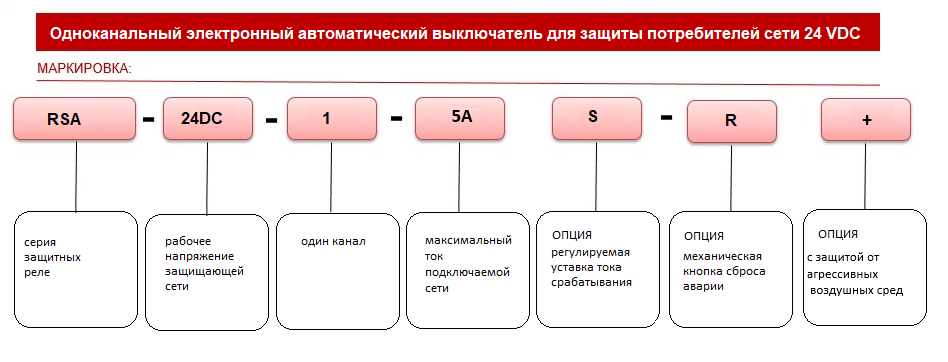RSA-24DC-1-*A Одноканальный электронный автоматический выключатель для защиты потребителей сети 24 VDC от перегрузки и КЗ , со статической уставкой срабатывания (где * это 1,2,3,4, или 5А), без механической кнопки сброса (аварии сбрасывается через клеммник, сухой контакт)Стоимость 6000 с НДС