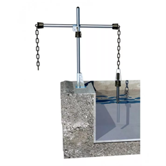Погружная трубка подвешивается к цепи сверху путем зацепления за многофункциональное зажимное кольцо и кронштейн из нержавеющей стали. (Цепь является частью системы держателей арматуры RSA-FLEX-CYH112.)